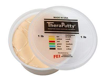 Anti-microbial additive resists growth of odor-causing microbes. Anti-microbial Theraputty material retains the clean, non-greasy feel of original Theraputty material. Each color-coded putty has a different consistency ranging from xx-soft for strengthening the weakest grasp to extra-firm for developing a stronger grip. Available in convenient easy-to-open plastic containers (2, 3, 4 and 6 ounce) for individual patients to use at home and a choice of larger containers (1 and 5 pound) for the hospital or clinic. CanDo Theraputty material is gluten, latex and casein free.