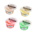 Exercise putty is used for hand therapy and to strengthen hand grasp. Scented Theraputty hand exercise material makes hand therapy more pleasant for youngsters. Using scented putty is a fun way for children to develop grip strength and stay attentive and participate. Tan (vanilla) is xx-light, yellow (banana) is x-light, red (cherry) is light, green (apple) is medium.
