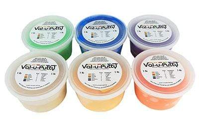 Val-u-Putty has the same great feel as the traditional CanDo Theraputty hand exercise material. Available in 6 resistance levels. Val-u-Putty is available in Berry Colors. Each color-coded putty has a different consistency ranging from xx-soft for strengthening the weakest grasp to x-firm for developing a stronger grip. The putty material is gluten, casein and latex free.