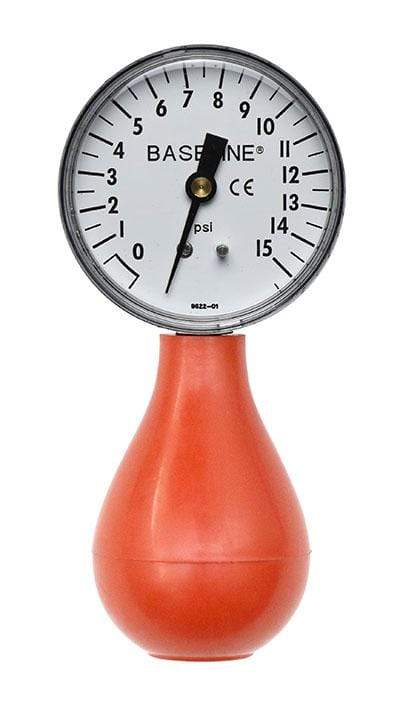 The Baseline squeeze (bulb) dynamometer with 15 PSI gauge and no max indicator is the inexpensive way to reliably measure hand and finger strength. Unit is calibrated in PSI (pounds-per-square inch).