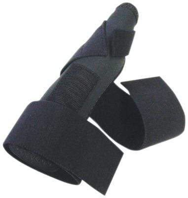Comfortable universal thumb spica immobilizes the thumb joint, gives gentle protective positioning of the MP and CMC joints, and provides wrist support. Made of compression-formed foam with no seams. Elastic closure straps enable easy application and removal. Universal sizing. Fits right or left thumb. Color: Black. Features: Compression Foam Thumb Spica with Elastic Straps. Easy Hook and Loop Closures. Universal Sizing.
