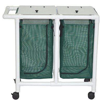 The Double hamper is great for storing laundry and other items. The added hamper allows for more storage. The mesh bag has a zipper for easier access and a 14.46-gallon capacity. The 3" twin casters and push/pull handle allow for easy maneuverability.