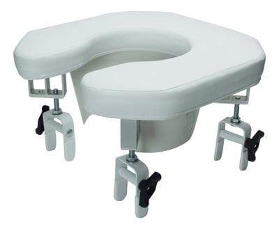 Adds 4" to toilet seat height, reducing bending effort .Unique open seat promotes patient independence and facilitates perineal cleaning and bowel training.