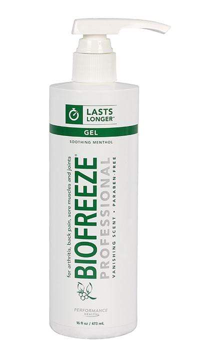 BioFreeze pain relief is available with gel-roll-on and spray applicators. It contains an ILEX base, and an herbal extract for a quick onset, long lasting, pain relief. The pain relief formula is greaseless, stainless, and has a vanishing scent. Lightly massage BioFreeze into all sides of sore muscles. Use to relieve pain from sore muscles and muscle spasms, back, shoulder, and neck pain, arthritis, painful ankle, knee, hip and elbow joints, and muscle strains. Use to relieve pain prior to massage therapy, soft tissue trigger point therapy, rehabilitation exercises, and pre and post workout stretch. This green gel comes in a 16 oz dispenser bottle.