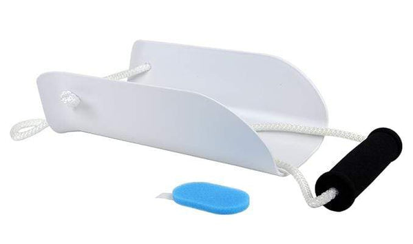 Large sock aid made with formed plastic material and with continuous loop handle. Sock aides are designed to guide sock over heel. This makes putting on socks easier. Foam patch helps to keep sock in place.