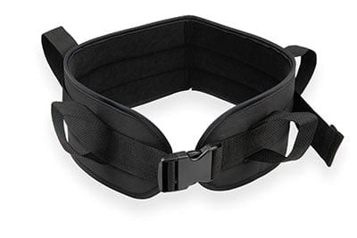 These padded transfer belts assist patient transfers. Allows for the comfort and dignity of patient as well as safety for both patient and caregiver. Pads are 6" wide with four handle loops spaced for safe grip points. Sizes color-coded for quick identification in a rehab department. Available with plastic side release buckle.