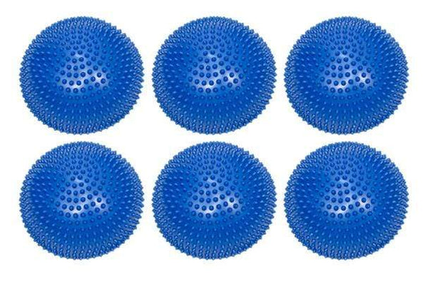 The CanDo Balance Stone is the inflatable solution for improving balance, strengthening the lower back, aiding posture and reducing back pain, stress, restlessness and anxiety. Shaped like an exercise ball sliced in half, the Balance Stone is dual sided. The bottom side is flat and smooth. The upper side is textured with nubs for tactile feedback and stimulation.  Standing, sitting or lying on the stone requires active participation and constant adjustments from the user to find balance. Not just for sitting and balance training, enhance everyday workouts by incorporating the stone into strengthening and toning exercise routines. Nearly every exercise routine can have a new twist and enhanced difficulty. Ideal for sciatica and improving range-of-motion. Laying on your back also provides a terrific massage as the nubs press in and relieve stress and pressure points. The stone arrives partially inflated so users can right on it as soon as it's out of the box. This is a case of 6 CanDo Balance Stones in Blue with a 14" diameter. Please note, Balance Stones do not include an air pump. In addition to air, the Balance Stone can be filled with either water or sand for added stability. Makes an excellent vestibular trainer when used with the curved side down. Combining dynamic seating and static positioning, the degree of difficulty in trying to sit on the stone can be varied by inflating or deflating. The Balance Stone is Latex-free, so it's safe for everyone. Easy to clean needing only a damp cloth and mild soap.