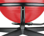 CanDo¨ metal ball chair includes a red inflatable exercise ball and chair base. The mobile ergonomic seating systems combine the benefits of ball therapy with the convenience of a chair base. Ball held securely in place by the base. Casters glide on carpet or hard surfaces. Light assembly required. The metal ball chair is available with our without arms. Locking casters sold separately.