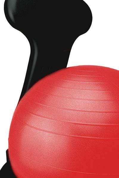 CanDo plastic ball chair includes a 22"(55cm) red inflatable exercise ball and chair base. The mobile ergonomic seating systems combine the benefits of ball therapy with the convenience of a chair base. Ball held securely in place by the base. Casters glide on carpet or hard surfaces. Light assembly required. The plastic ball chair is available in child and adult size. Two locking caster wheels are included.