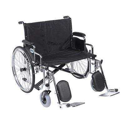 The Sentra EC Extra Wide Heavy Duty Wheelchair is a heavy duty wheelchair with a 700 pound weight capacity. This is made possible through the use of reinforced steel gussets, reinforced nylon upholstery, reinforced side frame, extra heavy duty front forks and casters, and dual cross bars. The stylish triple chrome coated steel frame and steel spoke wheels add a touch of elegance to this bariatric wheelchair. This Sentra EC Extra Wide Heavy Duty Wheelchair comes with detachable desk arms, elevating leg rests and a 26" wide seat.