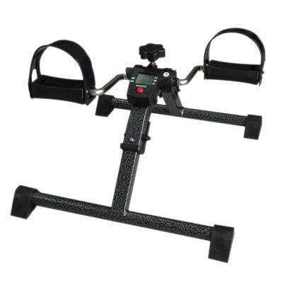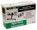 The CanDo fold-up digital pedal exerciser ships pre-assembled - just add tension knob! This model folds for easy storage, transportation and shipping. Digital LCD display keeps track of amount of exercise performed, including: RPM, pedal count, time count, calorie count and scan. Requires 3 AAA batteries (included). Pedal exercisers are inexpensive and portable exercisers for both the upper and lower body. They can be used on the floor for foot pedaling, or on the tabletop for hand pedaling. Wide leg spread and non-marring feet keep exerciser stable even when patient has little muscle control. Wrap around adjustable foot straps for use with or without shoes. Adjustable tension knob allows for easy changes in pedaling difficulty level. Pedal forwards or backwards.
