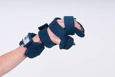 The Comfy Splintsª Progressive Rest Hand Splint with 5 straps (Adult Small, Left) provides support and positioning for weak or deformed wrists, hands or fingers. Create a custom fit without the use of tools or heat guns. Its progressive design allows for thumb and wrist control, while its individualized strapping allows for a more traditional "C" formation. This splint has super soft straps that are perfect for those with sensitive or fragile skin. Side wings on the splint prevent ulnar/radial deviation. The removable navy blue broadcloth cover is machine washable. An optional to use finger separator is included. This resting splint is excellent for preventing trauma to joints andÊincreasing range of motion. Versions of this splint for the left and right hand are available, along with two sizes: Adult and Adult Small. The Adult size has a total length of 12.5" and its length from the wrist to the top of the middle finger is 7" to 8". The Adult Small size has a total length of 11" and its length from the wrist to the top of the middle finger is 6" to 7".