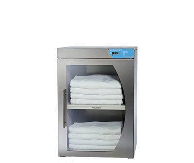 Programmable and quiet, these blanket warmers from Enthermics provide comforting heat and maintain patient normothermia throughout procedures in the ER, surgical suite, labor room or delivery area. This reduces surgical site infection risks and aides in the recovery process. Engineered for floor-standing point-of-care with an aesthetically pleasing, quality design, the warmers contain the patented WarmSafe zone heating system with heated shelves, which ensures every blanket is safely and evenly warmed by adjusting temperature throughout the cabinet. These warmers are quiet with no fans or moving parts, making them perfect for delivery rooms, ICU and NICU. This warmer has a capacity of 7.5 Cubic Feet. These patient friendly warmers feature four heavy-duty, rugged casters, allowing this cabinet to be moved throughout a facility where it's needed quickly and easily. The absence of fans and their noise add to the emphasis on comfort and care. The single pane, energy-efficient, e-coated glass door allows for quick inventory observation and reflects heat back into the unit. Featuring an epoxy-coated steel exterior casing and interior insert, the unit is externally sized at 35.5" x 24" x 23.75". It has enough space for 10-12 blankets. The temperature is adjustable, allowing blankets to be warmed up to a range of 98 through 200 degrees fahrenheit. The door to the unit is fully gasketed and features an easy, hands-free push button to open, making it convenient for caregivers with hands full of blankets needing to be warmed.