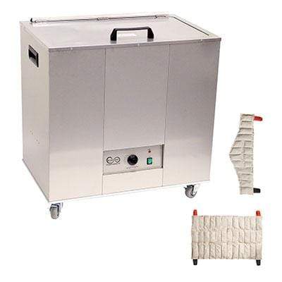 This Relief Pak Heating Unit has the capacity to hold and heat 24 moist heat packs up to 175 degrees in an insulated hot water bath. Moist heat and moist heat packs help treat acute and chronic pain, relieve aches and ease soreness and stiffness. They are ideal for recovery use post-injury and post-workout with a material that conforms to any body part and is pliable when heated. Moist heat is also more effective in deeper tissue heating and penetrates further than dry heat at the same temperature. This heating unit has an adjustable temperature control and features a glowing orange light that illuminates when the unit has reached its desired temperature. For best results, use moist heat packs at 160 degrees. The unit's mobile design with rolling feet allow it to be easily moved across a room, or from room-to-room. This heater, which runs on 110V, can store and heat up to 24 packs. This unit comes with 8 Oversize and 8 Neck Relief Pak moist heat packs. Also comes with a removable plug set and fully illustrated user manual. Made from durable stainless steel that's perfect for high traffic clinics, the insulated design retains heat and keeps it from dispersing out of the unit. The on/off switch glows green when the unit is in use. Each moist heat pack delivers up to 30 minutes of hot, moist, therapeutic relief. Handle pack by the corner tab and wrap in a towel or covering before use. The heat packs are also reusable. Once drained, the unit is easy to clean. Use a soft cloth, sponge or non-abrasive cleaning pad to wipe down the unit and mild soaps and non-abrasive detergents to clean the surfaces. Do not use steel wool, bleach or cleaners with high chlorine contents. Versatile Relief Pak Heaters and Moist Heat Packs are designed for use at home or in multi-user environments. That's why they're highly recommended by physiotherapists, physicians, chiropractors, athletic trainers and kinesiologists.