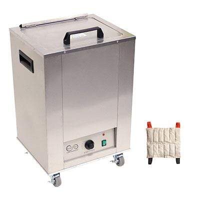 This Relief Pak Heating Unit has the capacity to hold and heat 8 moist heat packs up to 175 degrees in an insulated hot water bath. Moist heat and moist heat packs help treat acute and chronic pain, relieve aches and ease soreness and stiffness. They are ideal for recovery use post-injury and post-workout with a material that conforms to any body part and is pliable when heated. Moist heat is also more effective in deeper tissue heating and penetrates further than dry heat at the same temperature. This heating unit has an adjustable temperature control and features a glowing orange light that illuminates when the unit has reached its desired temperature. For best results, use moist heat packs at 160 degrees. The unit's mobile design with rolling feet allow it to be easily moved across a room, or from room-to-room. This heater, which runs on 220V, can store and heat up to 8 packs. This unit comes with 8 Standard Relief Pak moist heat packs. Also comes with a removable plug set and fully illustrated user manual. Made from durable stainless steel that's perfect for high traffic clinics, the insulated design retains heat and keeps it from dispersing out of the unit. The on/off switch glows green when the unit is in use. Each moist heat pack delivers up to 30 minutes of hot, moist, therapeutic relief. Handle pack by the corner tab and wrap in a towel or covering before use. The heat packs are also reusable. Once drained, the unit is easy to clean. Use a soft cloth, sponge or non-abrasive cleaning pad to wipe down the unit and mild soaps and non-abrasive detergents to clean the surfaces. Do not use steel wool, bleach or cleaners with high chlorine contents. Versatile Relief Pak Heaters and Moist Heat Packs are designed for use at home or in multi-user environments. That's why they're highly recommended by physiotherapists, physicians, chiropractors, athletic trainers and kinesiologists.