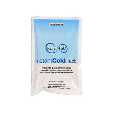 The Relief Pak Instant cold compress helps relieve pain from minor bumps and bruises. Quick to freeze and easy to use. Instant cold pack becomes 34 degreesF in just 3 seconds just by squeezing the bag. Cold is achieved through safe chemical reaction. Bag is double-lined. Small 4" x 6" - Case of 12.