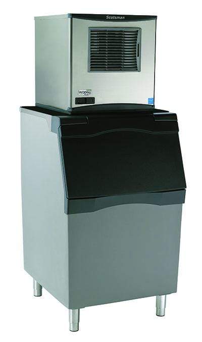 The Scotsman Prodigy Plus Ice Maker with Storage Bin is a self-monitoring ice machine with external indicator lights continuously communicates the machine's operating status for complete confidence in its ice-making capability. It makes it easier than ever for users to maintain their equipment and keep them nice and cold. With advanced self-diagnostic Prodigy  technology, Prodigy nugget ice machines deliver increased reliability and efficiency, using up to 50 percent less water and 15 percent less energy than cube ice machines. The Prodigy Plus features a durable stainless-steel design and can make up to 420 lbs of less dense "chewable" ice per day. The internal surfaces feature AgION antimicrobial protection to slow the growth of bacteria. The front air filter provides easy access for regular cleaning and the LED lights indicate when maintenance is needed. Includes 420 lb. capacity storage bin.