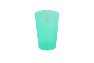 Designed with a nose cutout to encourage correct head position. Allows user to drink with little or no shoulder flexion, wrist extension or head/neck movement even when wearing a cervical collar. Dishwasher safe plastic.
