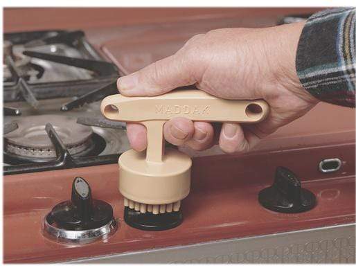 It can be used on any non-round or ribbed knob or appliance handle. The grip is secured when pressed onto knob. Measures 2¼" in diameter but can grip larger irregular-shaped knobs. The T-shaped handle measures 5¼" long.