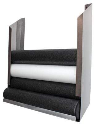 Convenient wall storage for 6 foam rollers. The rack has polished stainless steel construction. The rack ships unassembled, but once assembled one can easily load the items at the top and remove them from the bottom.