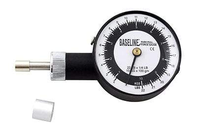 Evaluate pain threshold. Standardized (1.52 cm2) flat circular probe is pushed against subject until pain threshold is reached. Measures in pounds and kilograms. Dimensions: 6" x 2" x 4"Weight: 1 lbsUPC: 714905026606Notice: Typically ships...