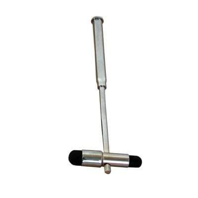 Percussion hammer can be used to elicit responses during examination. One side of instrument has neurological buck hammer latex free head, and the other end has a point and brush for cutaneous sensation evaluation.