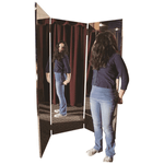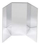 Ultra-Safe glassless mirrors provide a distortion-free image with its highly optical reflective film. The film is lighter and brighter than glass mirrors and are a perfect glass alternative. These "glassless" mirrors are shatterproof and are light in weight. They cannot crack, shatter or chip but can be punctured. This Ultra-Safe glassless mirror is a free-standing triple panel that needs no additional support. Each panel is attached with heavy-duty hinges.