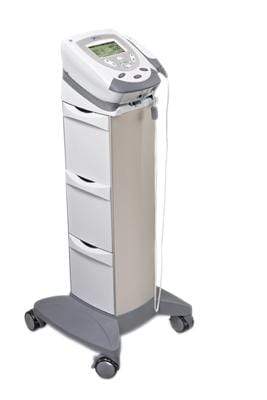 Intelect¨ Transport 2-channel stim and ultrasound combo unit features fully functional 1 and 3.3 MHz ultrasound frequencies. Two channels of electrical stimulation output. Ten user-defined memory positions for User Protocols. Four standard waveforms on board: Interferential, Premodulated, High Volt, and Russian. Pulsed and continuous therapy operation (10%, 20%, 50% and 100%). Independent intensity and parameter controls for each channel. Ergonomically designed Sound Head Applicators available in a variety of sizes (1 cm_, 2 cm_, 5 cm_ and 10 cm_). All Sound Head Applicators are interchangeable with Electronic Signatureª residing on all transducers. Watertight sound heads for use in underwater therapy. Head-warming feature on all sound Head Applicators. Unit uniquely designed for tabletop, wall mount, therapy cart or mobile use. 110V or battery powered (battery pack sold separately) option. Comes with therapy cart that integrates with the unit to maximize storage of clinical supplies