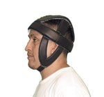 A protective helmet should be worn to protect the special needs person from the dangers of physical activity, potential strike hazards (floor, wall, furniture, etc.), self-abusiveness, seizers and spasticity. The washable soft-top helmet protects the front, back and side of the head. Outer covering filled with shock absorbent material. Helmet comes with an adjustable Velcro chin-strap to keep the helmet in place.