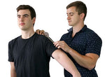 A goniometer measures range-of-motion (ROM) of various joints. The 180° head is marked in 1° increments. Arm measures in inches and centimeters. Tension between the arms is controlled by the thumb knob