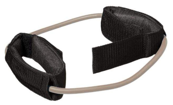 Lightweight, compact and portable, the tubing exerciser helps perform strengthening and conditioning workouts on-the-go, even in your hotel room! Continuous tubing loop has two padded ankle/wrist cuffs. The exerciser is preassembled and has a circumference of 35". CanDo is licensed to use the Thera-Band color sequence so resistance level is easily identified. The tubing with cuff exerciser is available in 7 levels of resistance for progressive exercise and 3 lengths to accommodate different needs. Levels range in order of strength from least to greatest resistance: tan, yellow, red, green, blue, black, silver. Length represents length of tubing from end to end when unit is laid flat and is taut. CanDo low powder exercise tubing is made of natural rubber latex, which may cause allergic reactions.