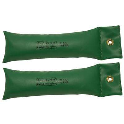 Use the comfortable CanDo¨ SoftGrip¨ hand weights instead of dumbbells. The product was developed by a patient during a physical therapy session. She was having difficulty grasping the 2 pound dumbbell prescribed to her as her hand was too big. She wanted something that would conform to her grasp, be comfortable, and unintimidating. SoftGrip¨ hand weights are also great for light workouts and for the arthritic patient. The SoftGrip¨ is soft but not floppy, color-coded to indicate weight, and has a grommet hole for storage on hooks. Available individual or in pairs.
