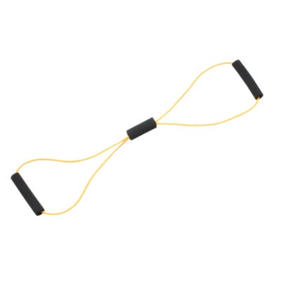 Lightweight, compact and portable, the tubing exerciser helps perform strengthening and conditioning workouts on-the-go, even in your hotel room! Two permanent foam covered rigid handles give the exerciser comfort and a firm grasp. CanDo is licensed to use the Thera-Band color sequence so resistance level is easily identified. The BowTie exerciser is available in 7 levels of resistance for progressive exercise and 3 lengths to accommodate different needs. Levels range in order of strength from least to greatest resistance: tan, yellow, red, green, blue, black, silver. Length represents length of tubing from end to end when unit is laid flat and is taut. CanDo low powder exercise tubing is made of natural rubber latex, which may cause allergic reactions.