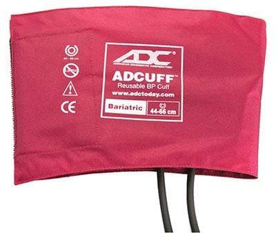 The Bariatric Adcuff is a sphyg cuff designed to use with most manual sphygmomanometers. It allows manual measurement on the upper arm for patients with a limb circumference from 44-66 cm. This cuff combines the limb range of a thigh cuff with the narrower width of an adult arm cuff. It has a radically curved shape to allow for a snug fit on even the most conically shaped upper arms. The Adcuff features the ADC Size Guide marking system to ensure a proper fit. This device is designed with Two-Tubes.
