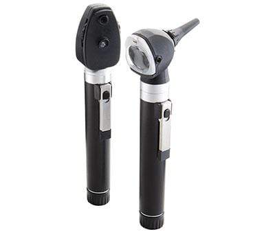The Diagnostix 5110N Pocket Diagnostic Set includes an Otoscope and an Ophthalmoscope. The Otoscope features fiber optics for cool, obstruction-free light transmission and a wide angle swivel 2.5x viewing lens. The Ophthalmoscope features 5 aperture selections (small spot, large spot, semicircle, fixed and red-free filter). Choose from 19 viewing lenses from -20 to +20 diopters for optimal resolution. It has a illuminated magnified lens dial, and a rubber brow rest for patient comfort. Each instrument uses 2 "AA" batteries. Taking these items on the go is made simple with the included hard case.