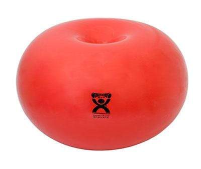 CanDo Inflatable Donut Balls are the ideal tool for exercise, workouts, core training sessions, stability training, Yoga, Pilates and balance training. The unique flat sided design of the Donut Balls helps the user improve balance, strength and stability. Finding balance means the core is engaged and getting stronger. The flat side of the Donut Ball works the core and provides stability while sitting, making it perfect for work or the classroom. The rounded side is for active exercise. The unique design allows users to add additional resistance and adjust their traditional workouts by including a Donut Ball. For instance, placing one between the legs makes sit-ups harder to complete. This ball is red, has a 30" diameter and is recommended for users 67"-73" tall. The instability of the ball is the key as users constantly need to engage stabilizing muscles, working to improve coordination and balance. The size and shape make these perfect to use at home, in the gym, at the beach or park?. anywhere you like to work out. Kneeling and balancing while using the Donut Balls freshens workouts and adds additional benefits as different muscle groups get worked. Donut Balls are available in 5 color-coded sizes for adults and children. Choose the right donut based on the expected user's height, just like an exercise ball. The balls range in diameter from 18" through 34". CanDo Donut Balls are non-slip and Latex-free. Their durable PVC material supports up to 300 lbs. Please note, inflation pump is not included.