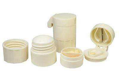 Small enough to carry in purse. Crusher mechanism doubles as a small water cup. Dishwasher safe.