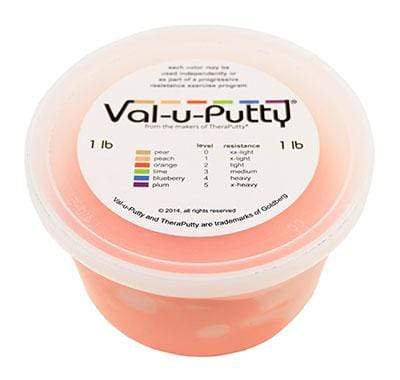Val-u-Putty has the same great feel as the traditional CanDo Theraputty hand exercise material. Available in 6 resistance levels. Val-u-Putty is available in Berry Colors. Each color-coded putty has a different consistency ranging from xx-soft for strengthening the weakest grasp to x-firm for developing a stronger grip. The putty material is gluten, casein and latex free.