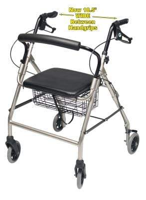 GF Walkabout Wide Four-Wheel RollatorThe Lumex Walkabout Wide Four-Wheel Rollator offers a lightweight and affordable solution with now MORE added comfort. Designed with a wider aluminum frame, this lightweight rollator now offers a width inside the handgrips of 18.5" providing more room than that of traditional rollators without having to go to a bariatric model.